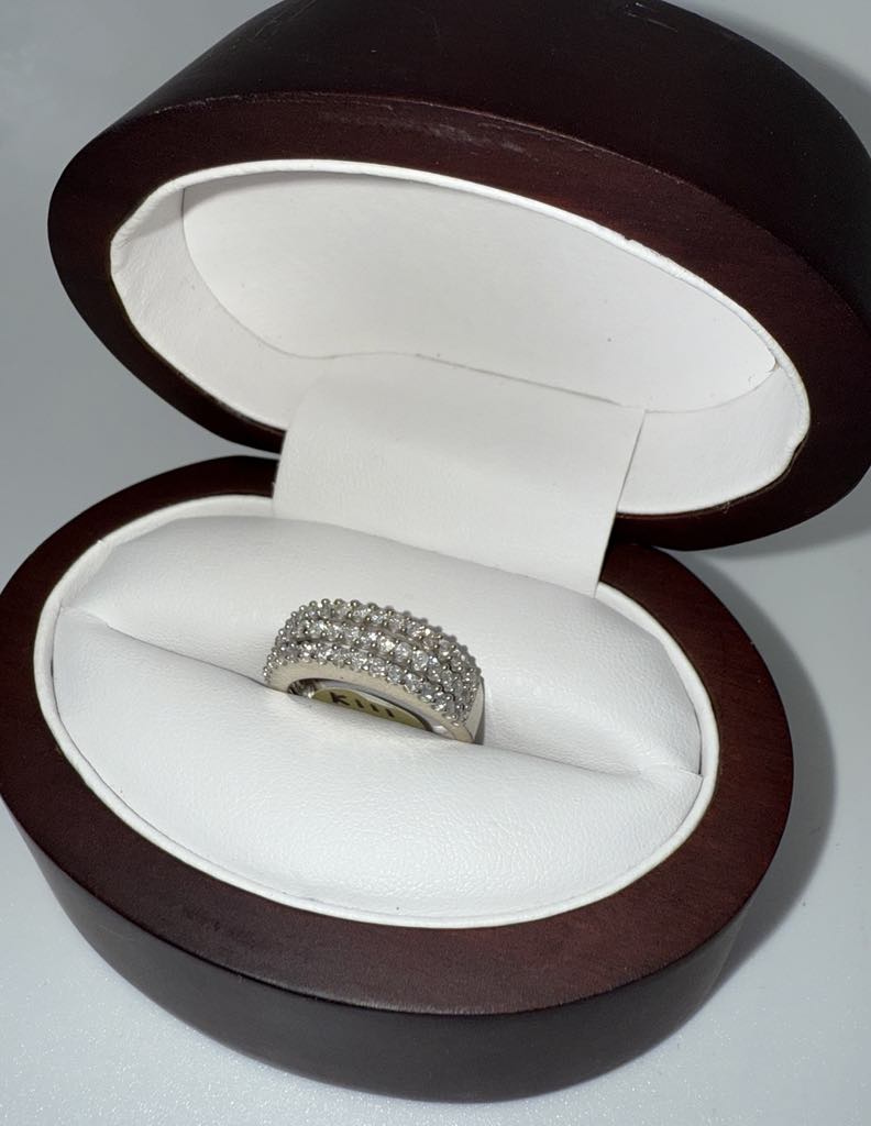 BAGUE EN OR 14KT BLANC PAVE DE DIAMANT