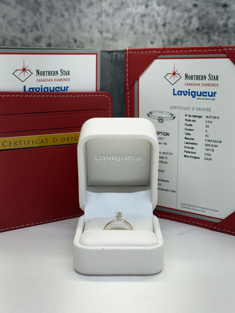 BAGUE EN OR 14KT SOLITAIRE DIAMANT NATUREL 31 PTS SI2 COULEUR G
