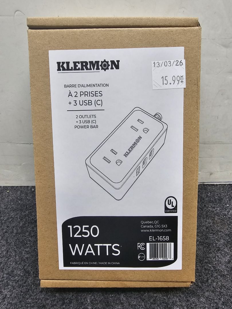 BARRE D’ALIMENTATION 2 PRISE 110V + 3 USB KLERMON EL-1658