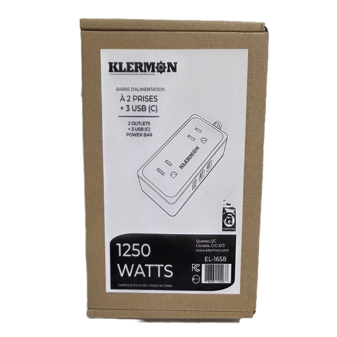 BARRE D’ALLIMENTATION KLERMON 2 PRISES 3 USB