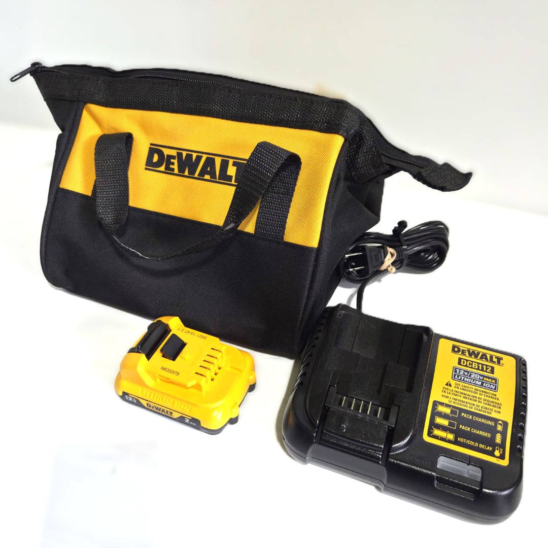 BATTERIE 12V / 2 AH + CHARGEUR + PETIT SAC DE TRANSPORT DEWALT DCB122 / DCB112