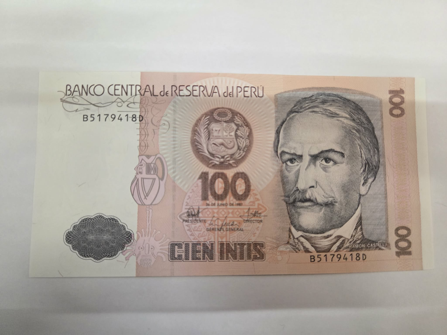 BILLET 100 INTIS PÉRU 1987 BANCO CENTRAL DE RESERVA DEL PERU B5179418D