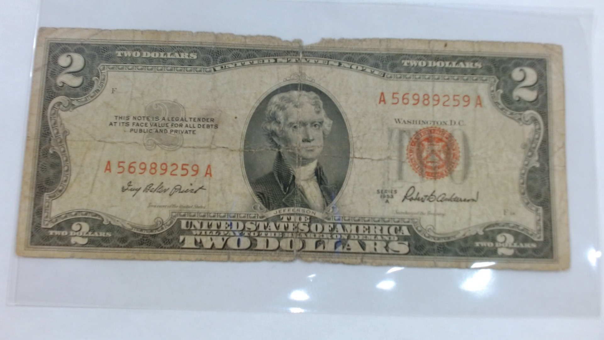 BILLET 2$ AMÉRICAN 1953 TWO DOLLARS UNITED STATES OF AMERICA SERIES 1953A