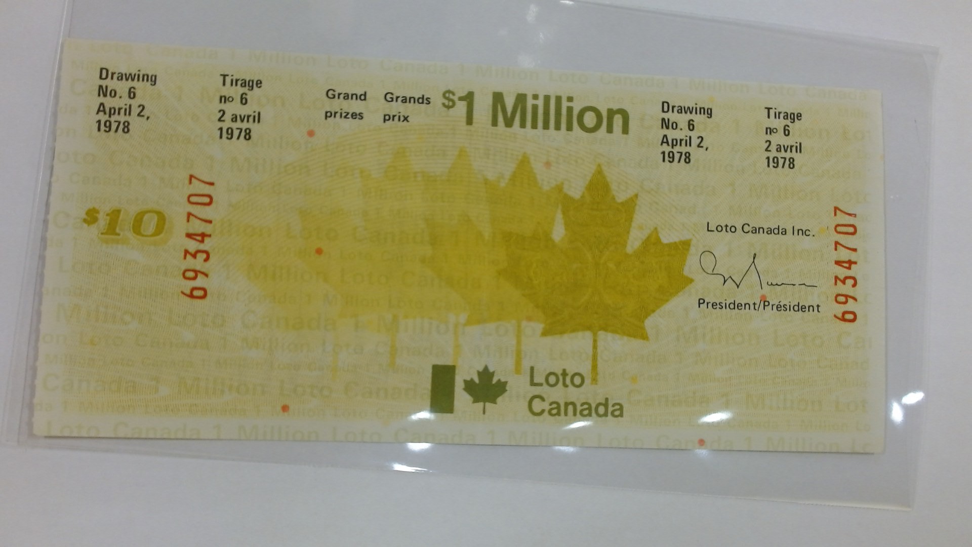 BILLET LOTO CANADA GRAND PRIX 1 MILLION LOTO CANADA INC. 2 AVRIL 1978