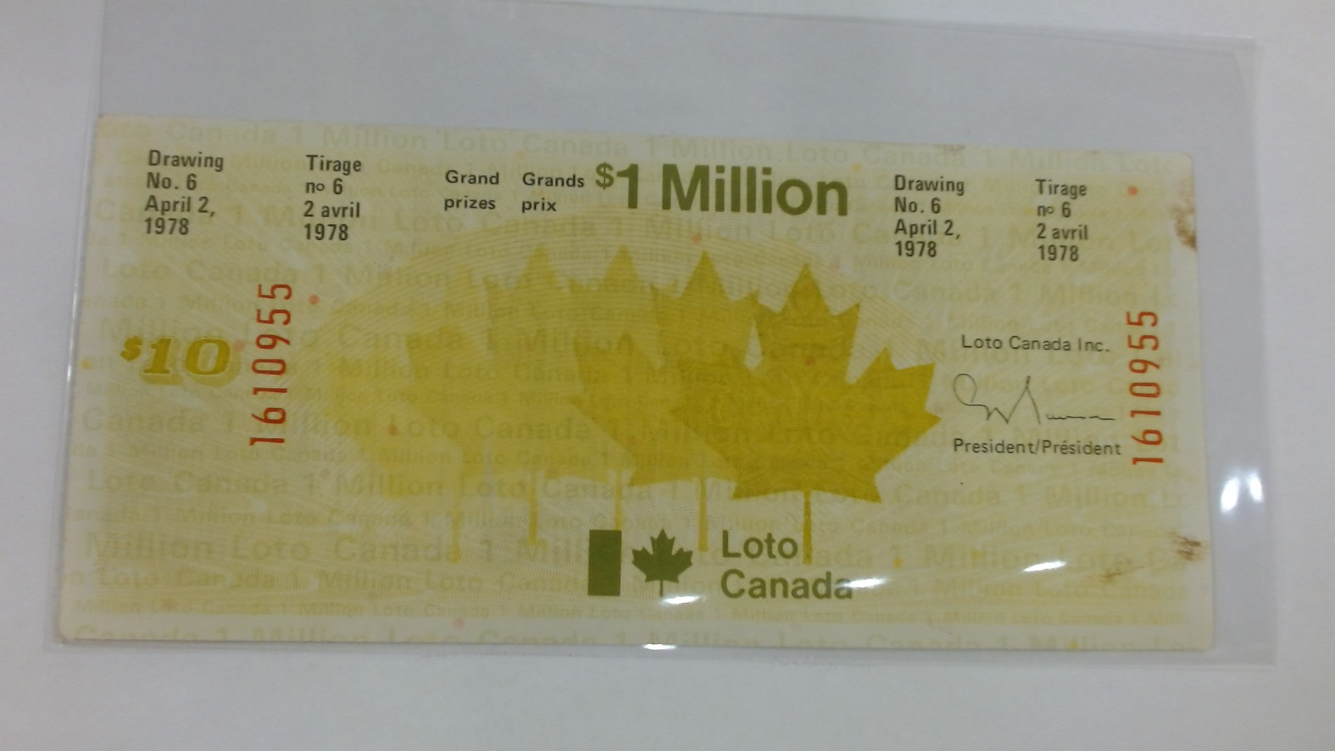 BILLET LOTO CANADA GRAND PRIX 1 MILLION LOTO CANADA INC. 2 AVRIL 1978