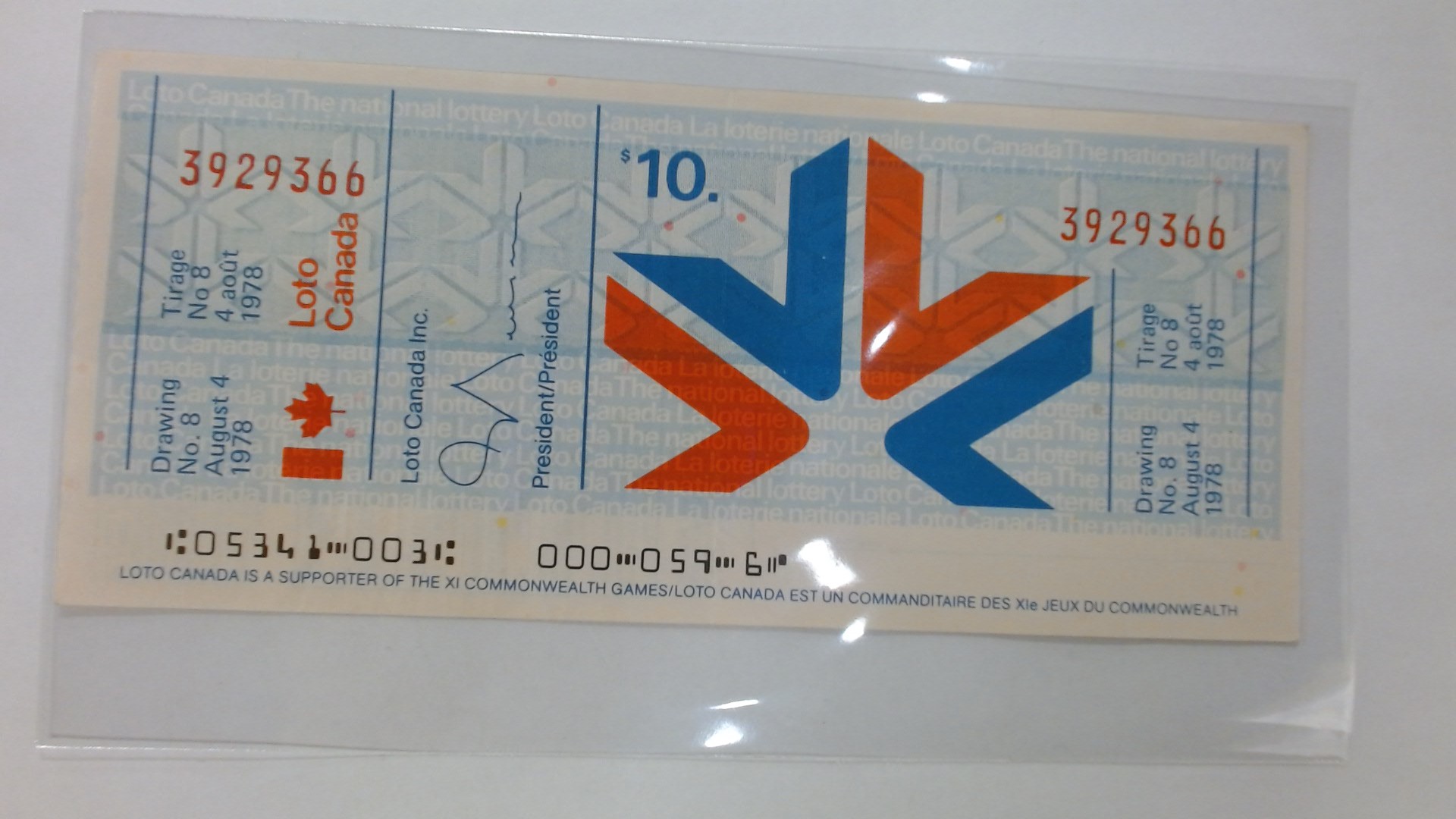 BILLET LOTO CANADA TICKET BONUS LOTO CANADA INC 4 AOUT 1978