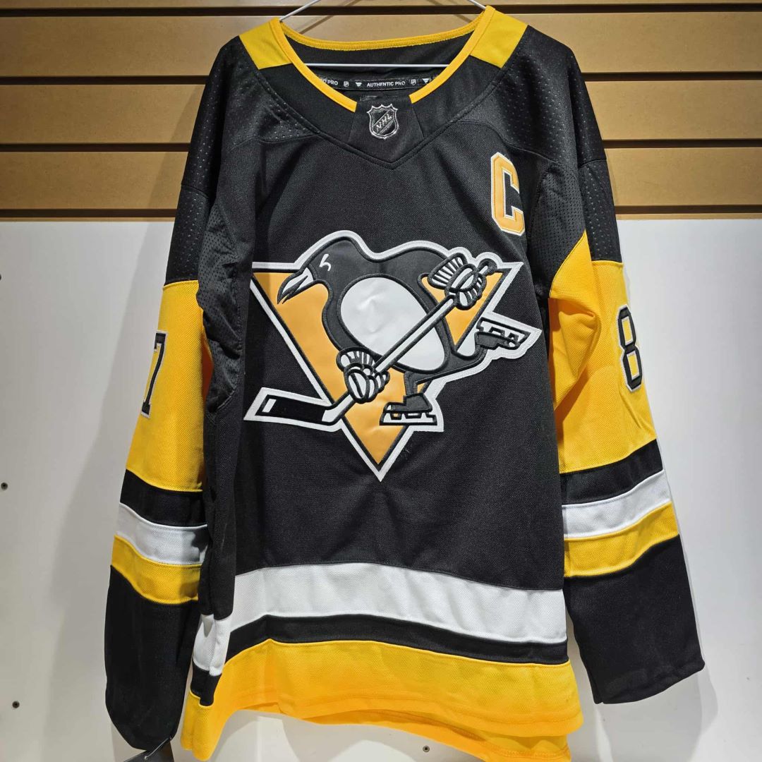 CHANDAIL PENGUINS DE PITTSBURGH NOIR LARGE NEUF NON OFFICIEL 87 CROSBY C