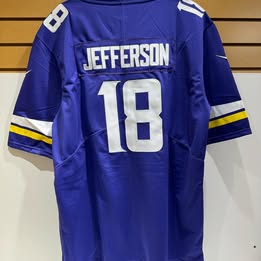 CHANDAIL VIKINGS DU MINNESOTA LARGE JUNIOR NEUF NON OFFICIEL MAUVE- 18 JEFFERSON