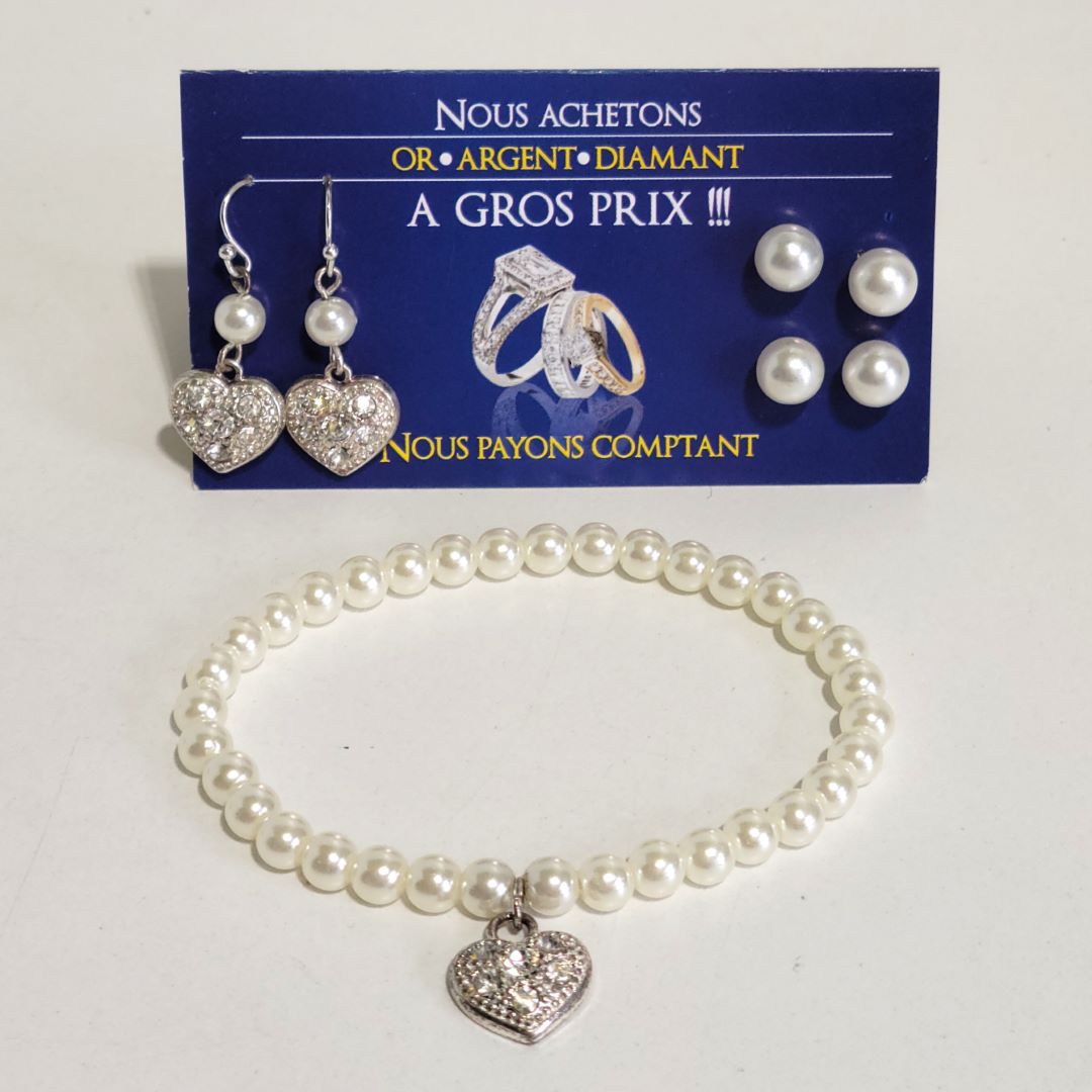 3 paires de boucle d’oreille et un bracelet élastique.