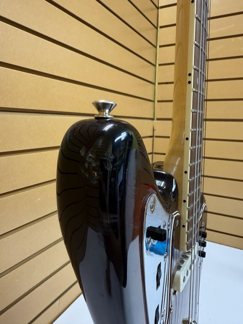 Micros : micros simples American Vintage ’65 Jaguar (manche et chevalet) avec capots métalliques dentés.