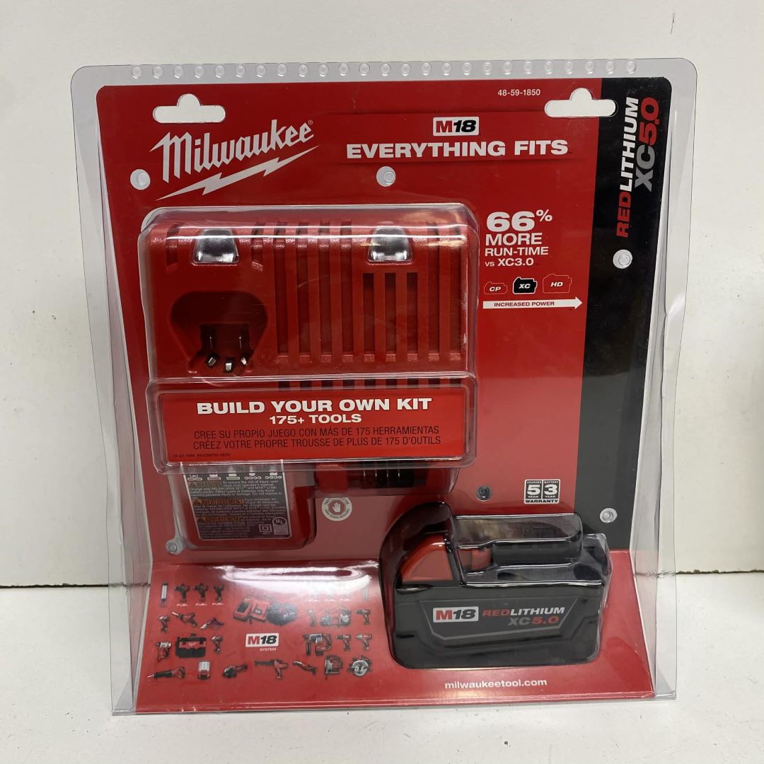 KIT BATTERIE M18 5 AH AVEC CHARGEUR NEUF MILWAUKEE 48-59-1850