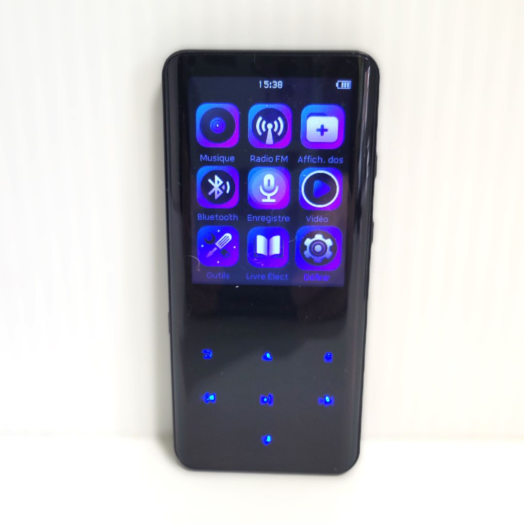 Nécessite une batterie AAA Menu repeat, dossier, hold, volume +- Prise pour casque d’écoute