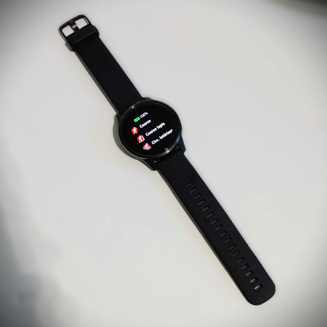 La Garmin Venu 010-02173-11 est une montre intelligente GPS haut de gamme de 43 mm dotée d’un écran AMOLED lumineux, d’une autonomie allant jusqu’à 5 jours en mode montre connectée et d’un boîtier noir avec lunette en ardoise. Elle offre un suivi de santé 24h/24 (cardio, Body Battery, sommeil, Pulse Ox), des entraînements animés, le stockage de musique, et Garmin Pay.