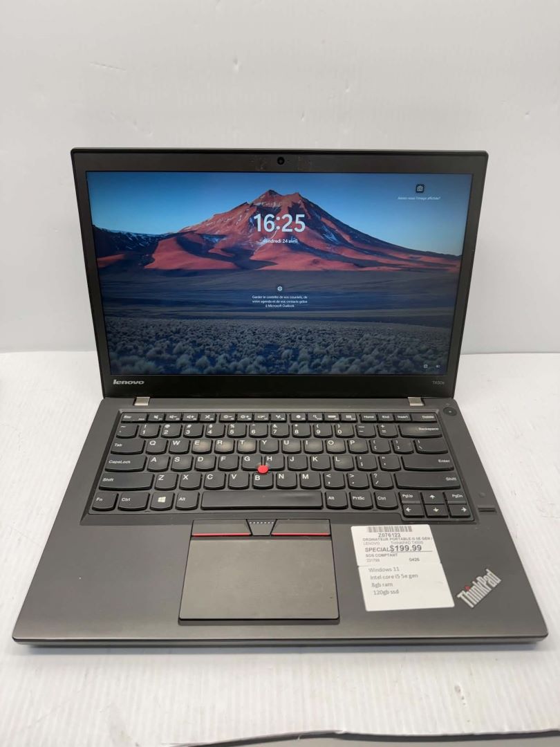 ORDINATEUR PORTABLE I5 5E GEN 8GB RAM 120GB SSD LENOVO THINKPAD T450S