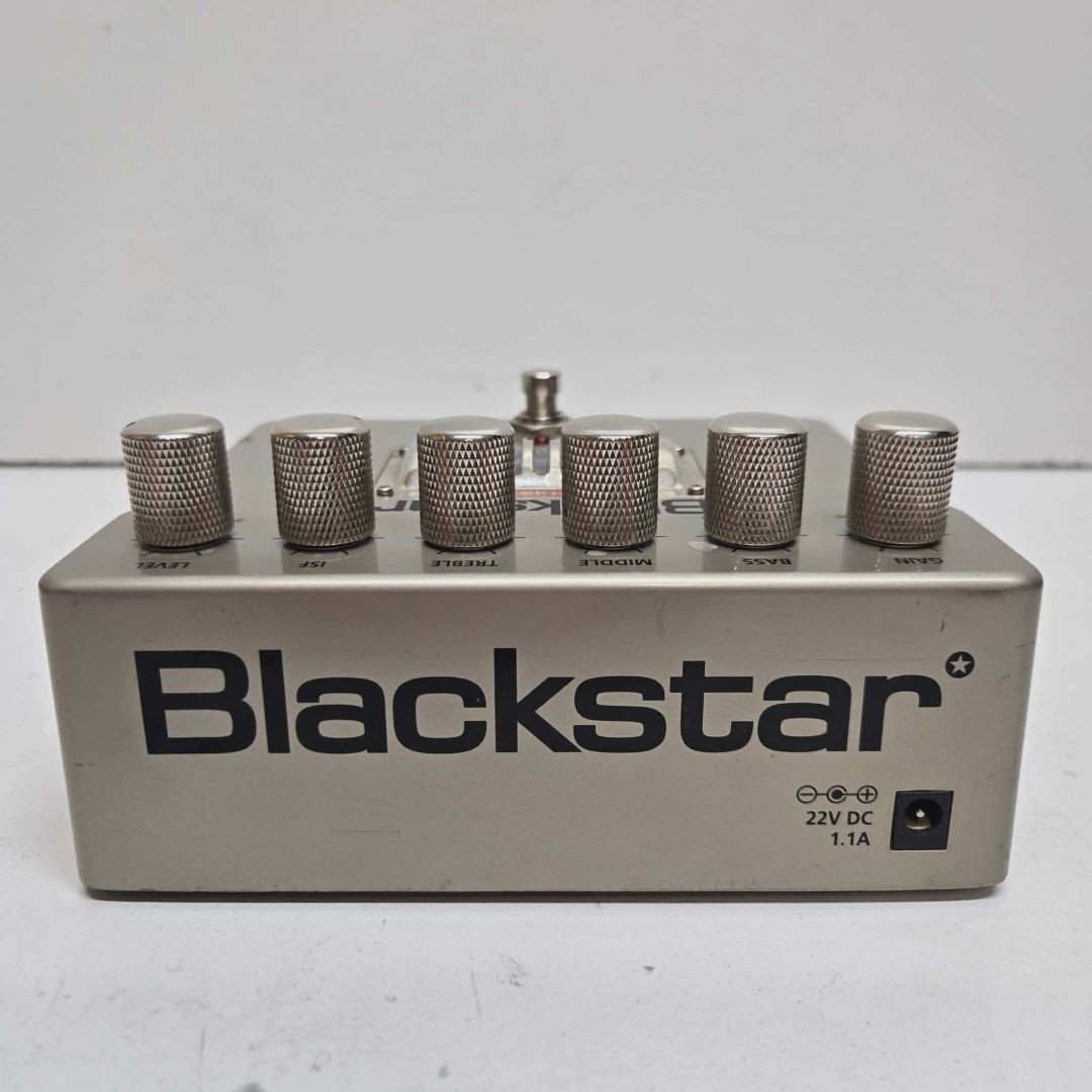 Pédale d’effet haut de gamme de marque Blackstar HT-DISTX dispose de réglages de gain, de volume, d’une égalisation 3 bandes et du réglage ISF propre à Blackstar qui permet de passer progressivement d’un son typé « Anglais classique » à « Américain moderne ».