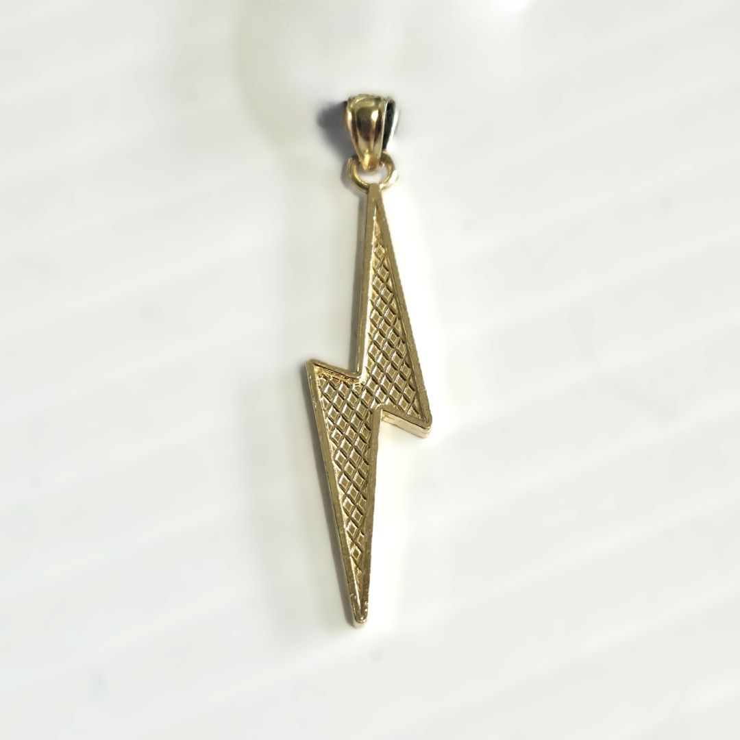 Pendentif éclair en or 10 carats, d’une longueur de 38 mm, d’une largeur de 8 mm et d’un poids de 1.1 grammes