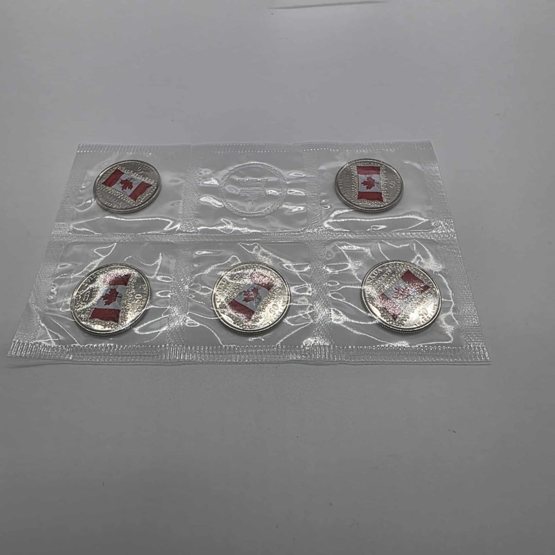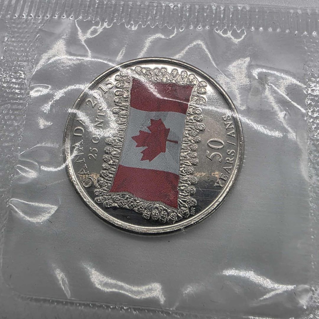 PIÈCE DE MONNAIE DE 0.25$ MONNAIE ROYALE CANADIENNE 50E ANNIVERSAIRE DU DRAPEAU CANADIEN