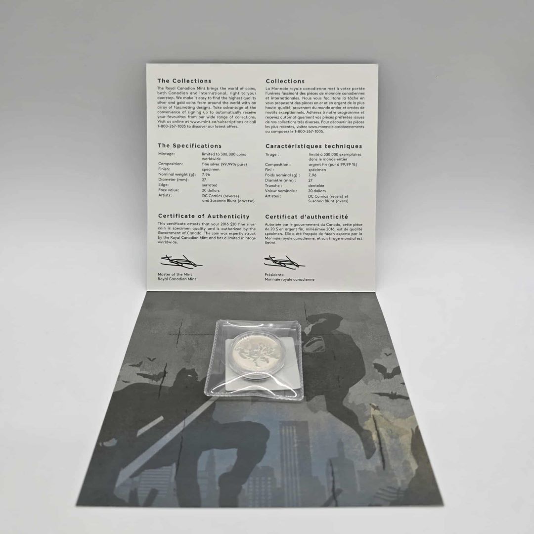 PIÈCE DE MONNAIE DE 20$ EN ARGENT MONNAIE ROYALE CANADIENNE SUPERHÉROS (SUPERMAN ET BATMAN)
