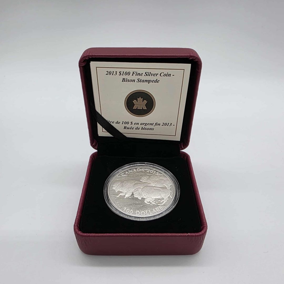 PIECES DE MONNAIE DE 100$ ARGENT 99.99% MONNAIE ROYALE CANADIENNE RUÉ DE BISONS 2031