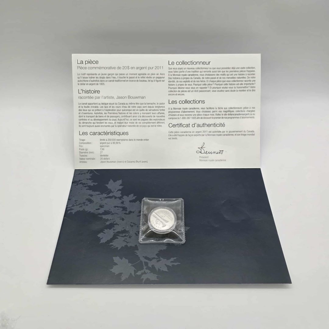 PIECES DE MONNAIE DE 20$ ARGENT 99.99% MONNAIE ROYALE CANADIENNE LE CANOE 2011