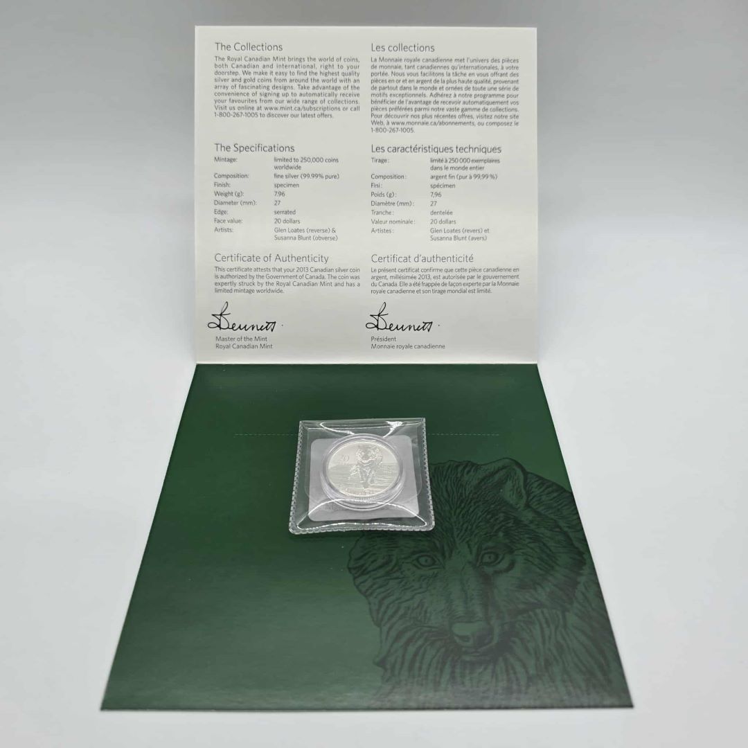 PIECES DE MONNAIE DE 20$ ARGENT 99.99% MONNAIE ROYALE CANADIENNE LE LOUP 2013